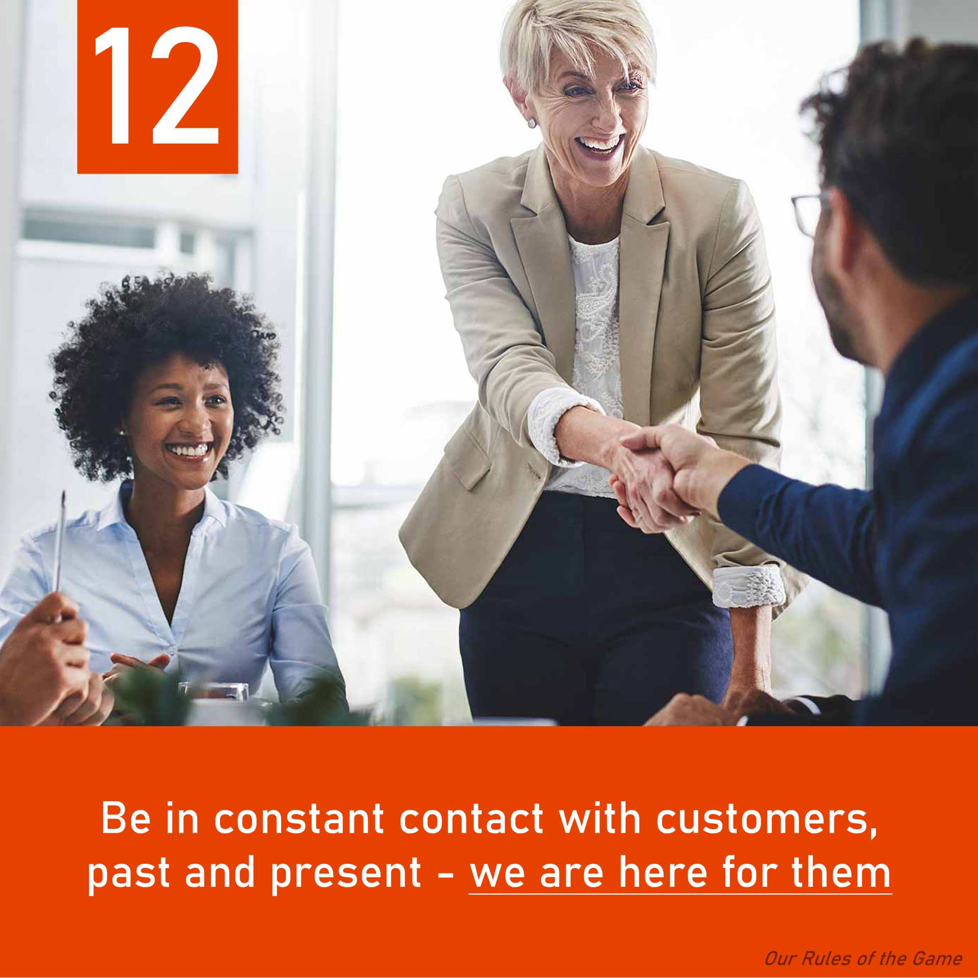Be in constant contact with customers, past and present – we are here for them.