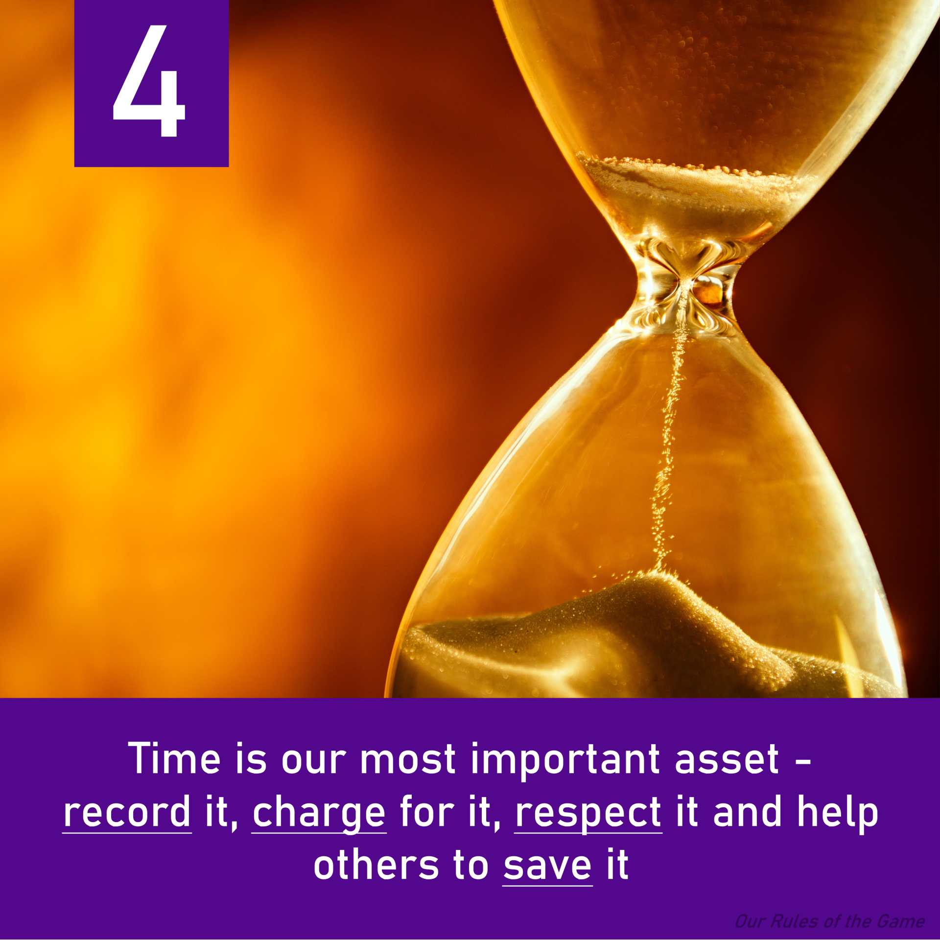 ‘Time is our most important asset- record it, charge for it, respect it and help others save it’.