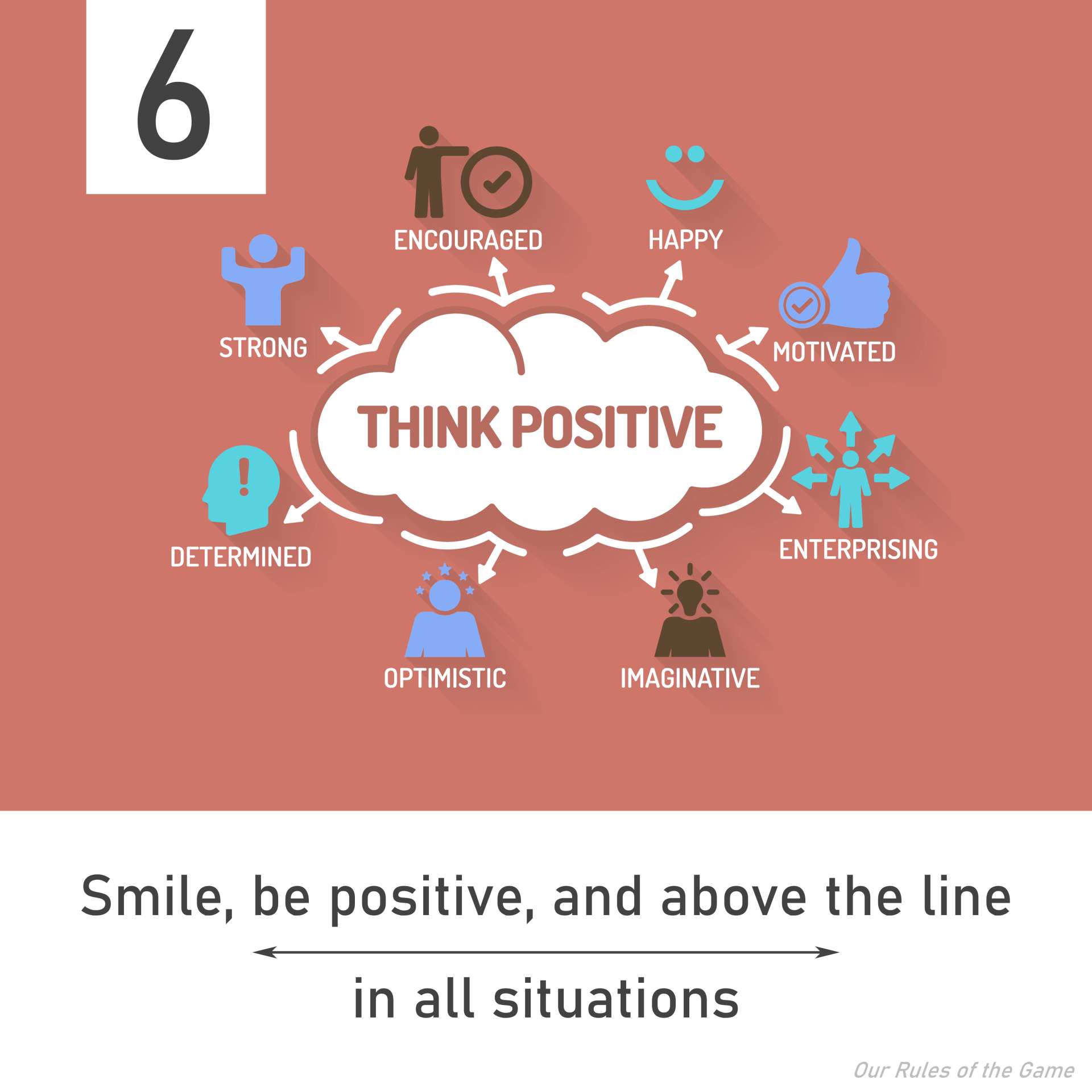 Smile, be positive and above the line in all situations